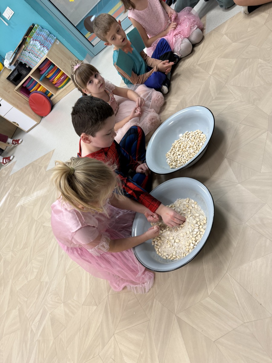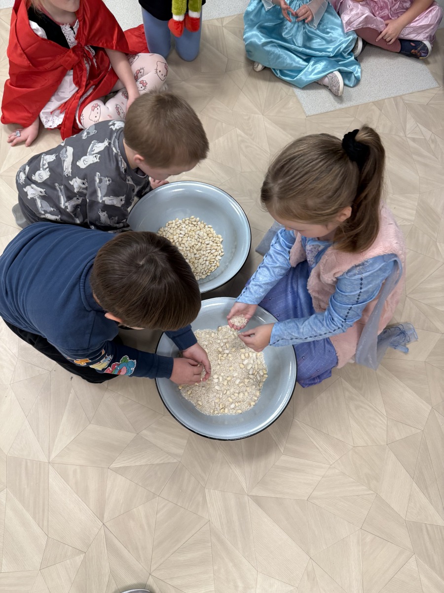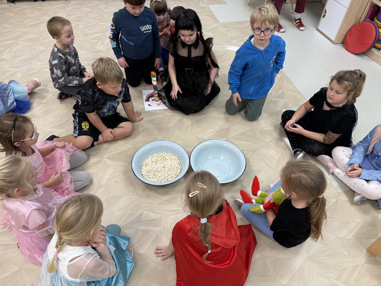 4.11 obchodzony jest dzień postaci z bajek. Również w naszym przedszkolu celebrowaliśmy ten dzień. Wykonywaliśmy różne zadania pomagając i lepiej poznając bohaterów znanych bajek. Pomagaliśmy kopciuszkowi oddzielić fasolę od maku, wilkowi zdmuchnąć domki, przyczepić ogon kłapouchego, widzieliśmy jak rośnie nos Pinokia gdy kłamie oraz wiele innych i oczywiście tańczyliśmy na balu przy piosenkach z bajek.