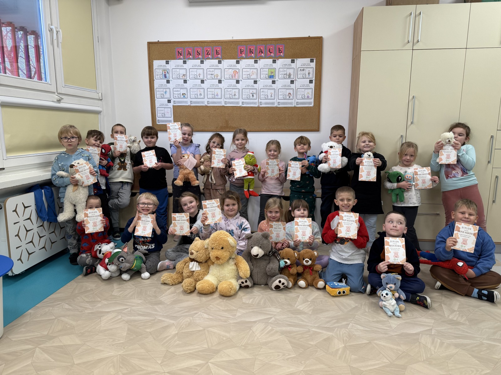 W dniu 25 listopada w naszym przedszkolu obchodziliśmy Dzień Pluszowego Misia. Dzieci przyniosły do przedszkola swoje ulubione pluszaki, które towarzyszyły im przez cały dzień. Przedszkolaki wysłuchały historii powstania pluszowego misia oraz uczestniczyły w zabawach ruchowych, piosenkach i konkursach związanych z misiową tematyką.