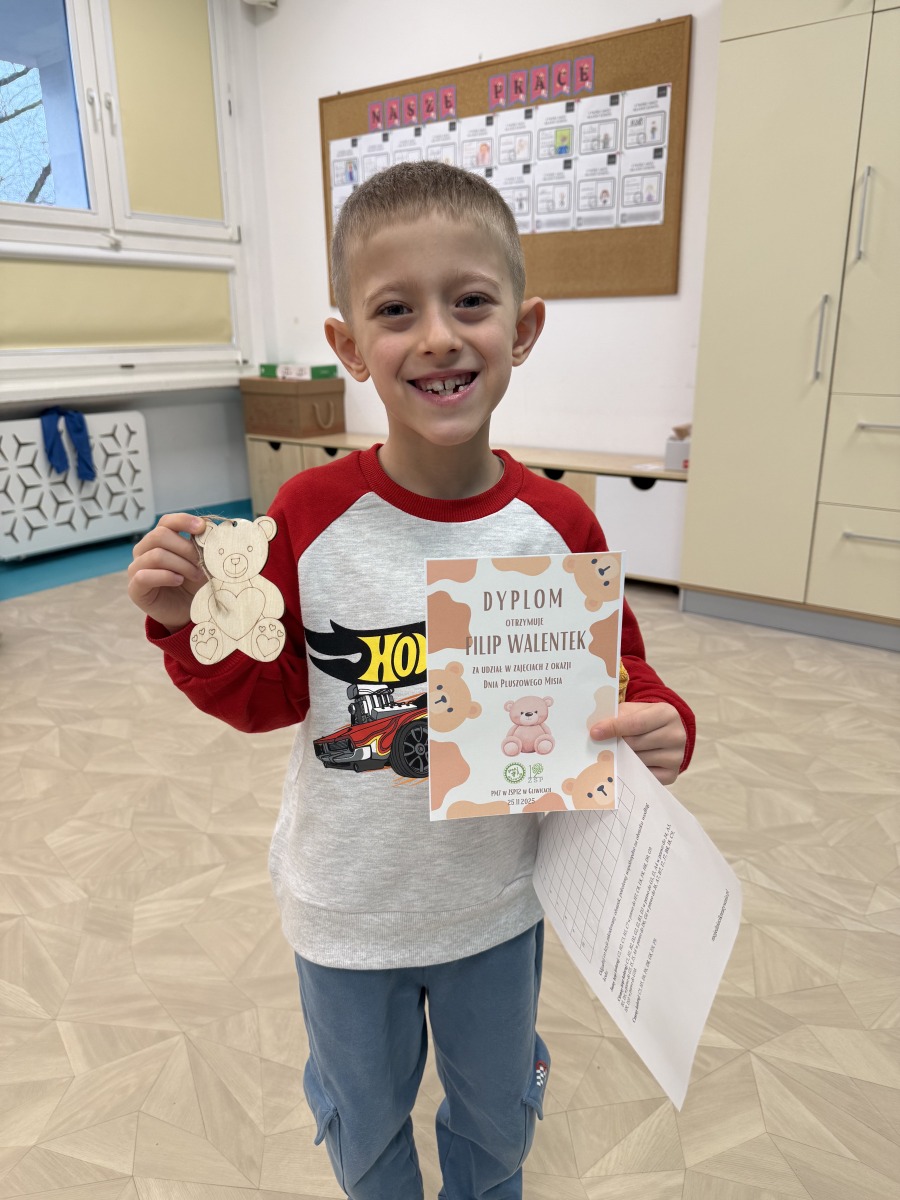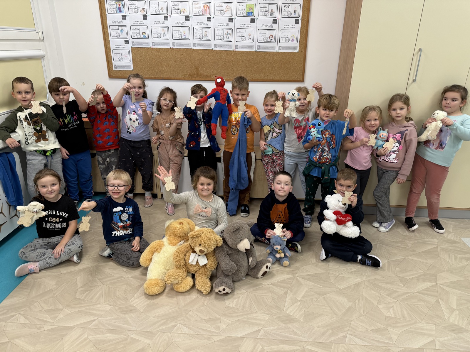 W dniu 25 listopada w naszym przedszkolu obchodziliśmy Dzień Pluszowego Misia. Dzieci przyniosły do przedszkola swoje ulubione pluszaki, które towarzyszyły im przez cały dzień. Przedszkolaki wysłuchały historii powstania pluszowego misia oraz uczestniczyły w zabawach ruchowych, piosenkach i konkursach związanych z misiową tematyką.