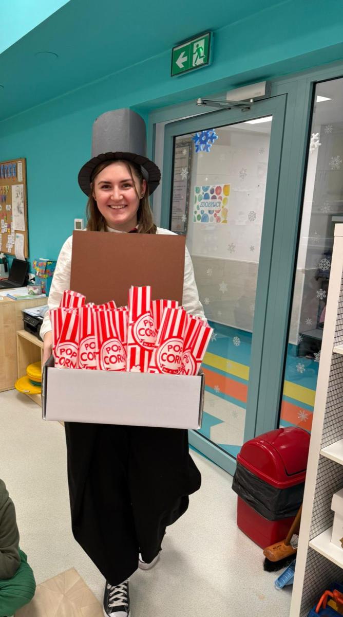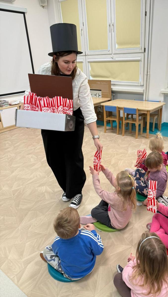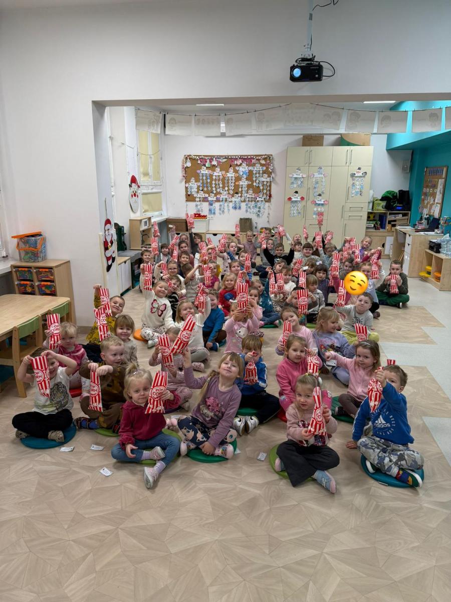 19.01 obchodzony jest dzień popcornu. W naszym przedszkolu również uczciliśmy to święto. Każdy przedszkolak przyozdobił swój bilet, następnie musiał go okazać bileterowi, aby wejść na seans. Gdy wszyscy zajęli już miejsca każdy otrzymał swój popcorn