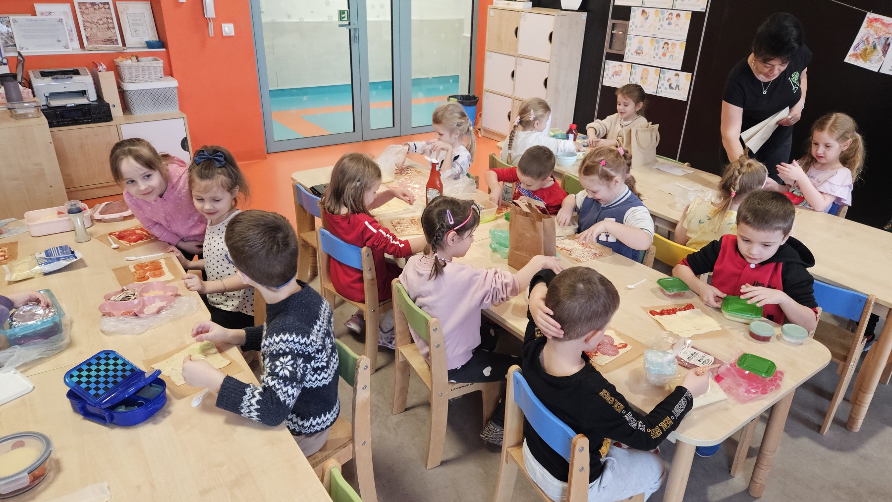 Dnia 11 lutego w Naszym przedszkolu obchodziliśmy Dzień Pizzy. Była to doskonała okazja do wspólnej zabawy, rozmów o ulubionych smakach oraz poznania historii tej popularnej potrawy. Dzieci brały udział w zabawach tematycznych oraz komponowały własną pizzę, którą w smakiem zjadły. Radości i uśmiechów nie brakowało, to był bardzo smakowity i wesoły dzień 🍕