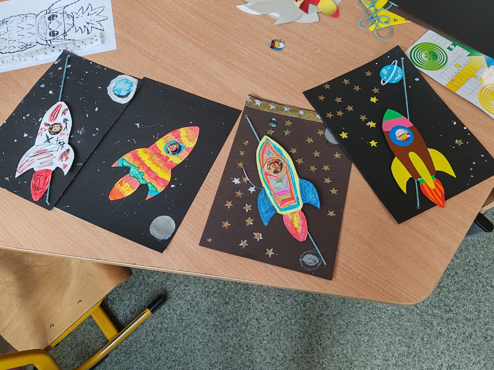 3 mają przypadał Dzień Astronauty z tej okazji dzieci w naszej świetlicy tworzyły kosmiczne rakiety, które się potrafią przemieszczać. Powstała również kartonowa rakieta i skafander. Uczniowie się dowiedzieli na czym polega praca astronauty, poznaliśmy również układ planeta słonecznych.