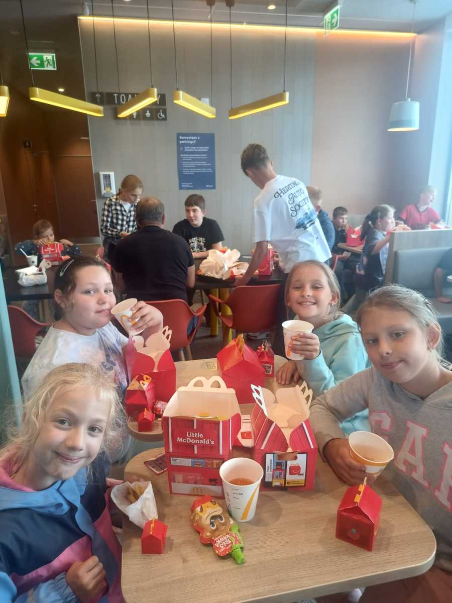 Dziś wyruszyliśmy do kina Cinema City w CH Forum w Gliwicach. Wszyscy obejrzeliśmy przeuroczy film ELIO. Po seansie wróciliśmy do szkoły prosto na obiad. Po obiedzie zajęliśmy się przeróżnymi zajęciami i warsztatami. Odbyły się zajęcia sportowe przy muzyce oraz mini gry sportowe. W grupie pierwszej powstała prześliczna fotobudka, grupa szósta zachwycała nas swoimi recyklingowymi pawiami i profesjonalnymi pracami plastycznymi. W grupie trzeciej i czwartej powstały wykonane różnymi technikami plastycznymi widoczki z żaglówkami. Grupa druga szalała na świeżym powietrzu. Zakończyliśmy dzień o 15:00 i przed nami weekend, podczas którego nabierzemy sił na drugi tydzień naszych półkolonii.