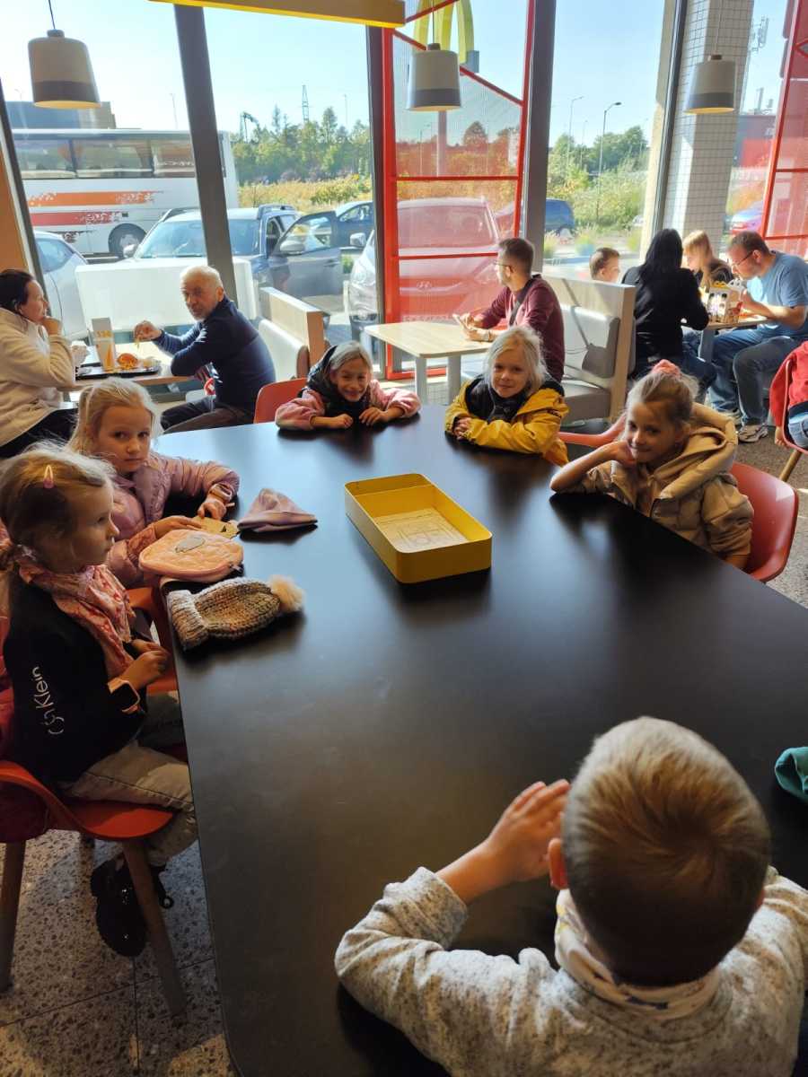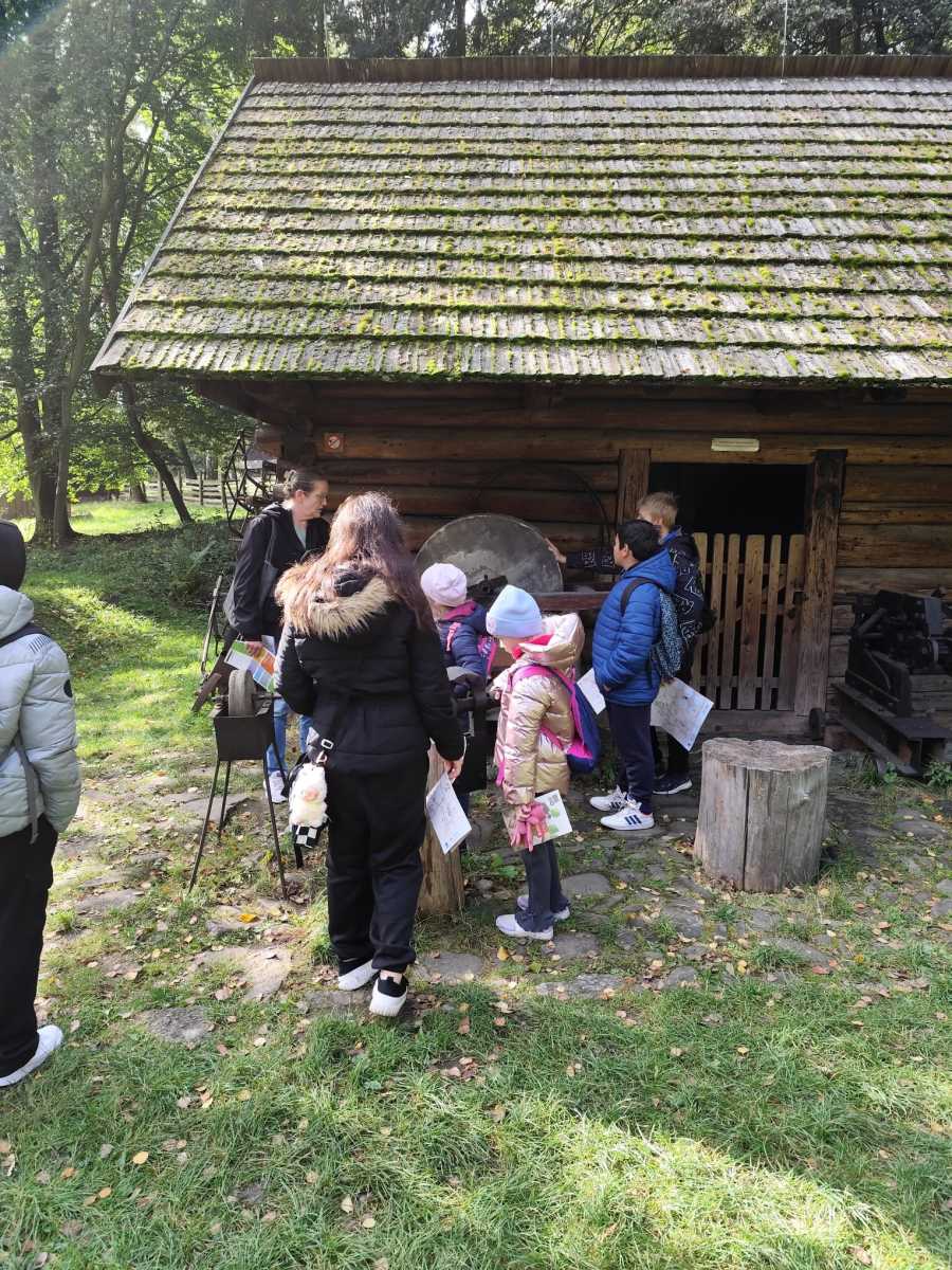 Dzisiaj czyli 04.10.2025 odbyliśmy drugą i ostatnią w tym roku wycieczkę, która zaprowadziła nas do Muzeum “Górnośląskiego Parku Etnograficznego w Chorzowie”. Rano było bardzo zimno i prosiliśmy słoneczko żeby wyszło zza chmur i wyobraźcie sobie, że się udało 🙂. Po podróży autokarem do Chorzowa i wejściu na teren muzeum, słońce zaczęło pięknie świecić i nas ogrzewać. Wszyscy dostaliśmy mapy odkrywców i naszym zadaniem było zebrać pieczątki na terenie skansenu, a przy okazji mogliśmy zwiedzać i podziwiać dawne: zagrody, chaty chłopów, wiatrak, kościół, chałupę wielorodzinną, garbarnię, kuźnię spichlerze, stodoły, pasieki, kapliczki, a nawet szkołę z 1853 roku!!!! szok!!! całkiem inaczej wygląda niż nasze współczesne szkoły. Wszystkim nam udało się znaleźć miejsca z pieczątkami i mapy zapełniły się stemplami, za wykonanie zadania otrzymaliśmy piękne dyplomy 🙂Po wspaniałej wyprawie w przeszłość, pojechaliśmy na obiad do Mc Donalda (którego wszyscy uwielbiamy). Wróciliśmy najedzeni i bardzo zadowoleni, bo to była wspaniała wycieczka 🙂.