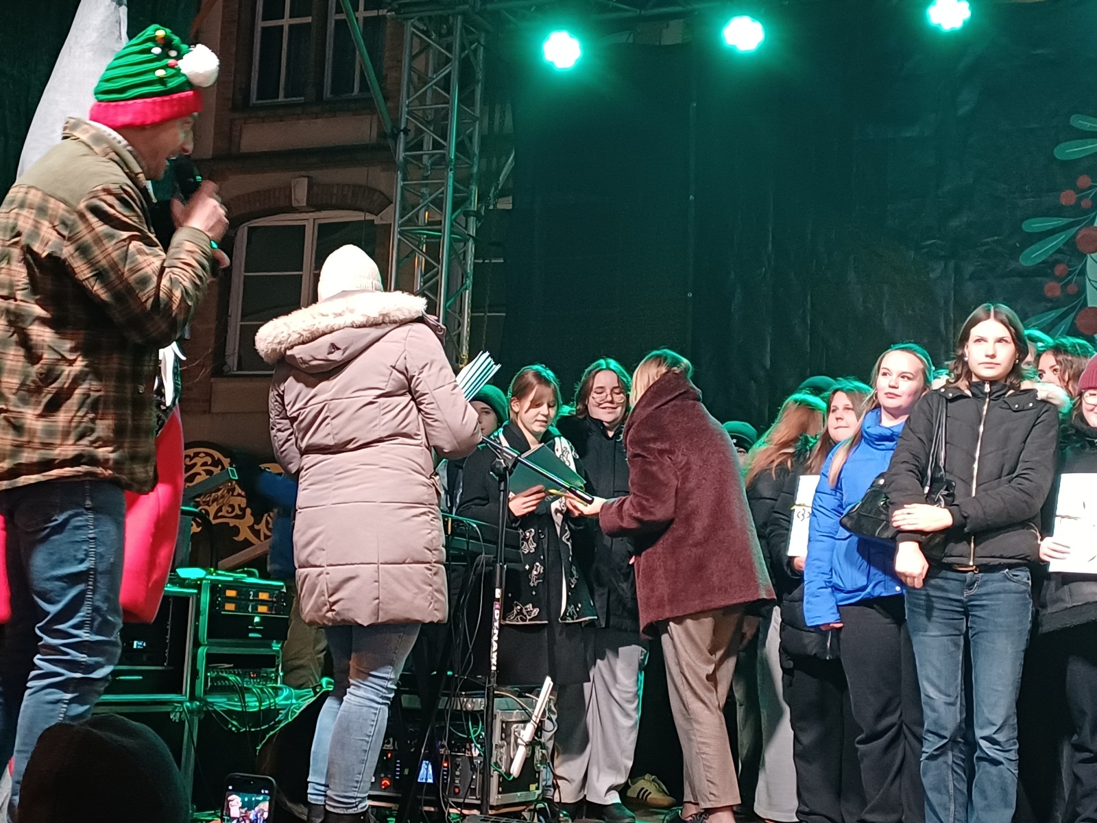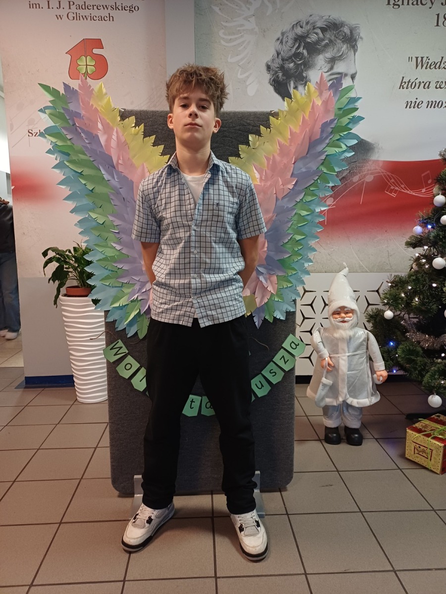 Tego dnia w naszej szkole można było zrobić sobie zdjęcie z symbolicznymi skrzydłami ( by na co dzień dodawać skrzydeł innym). Członkowie Szkolnego Koła Wolontariatu spotkali się z koordynatorkami Koła, by wspólnie świętować. Otrzymali kartkę z podziękowaniami i słodki upominek. Wieczorem na gliwickim rynku odbyły się miejskie obchody Dnia Wolontariusza. Dwie nasze szczególne wolontariuszki-Ania i Justyna odebrały na scenie z rąk Prezydent Katarzyny Kuczyńskiej-Budki podziękowania za swoje zaangażowanie i bezinteresowną pomoc. Serdecznie gratulujemy Ani i Justynie a wszystkim naszym wolontariuszom jeszcze raz życzymy wytrwałości, radości i safysfakcji i niesłabnącego zapału do dalszego działania!