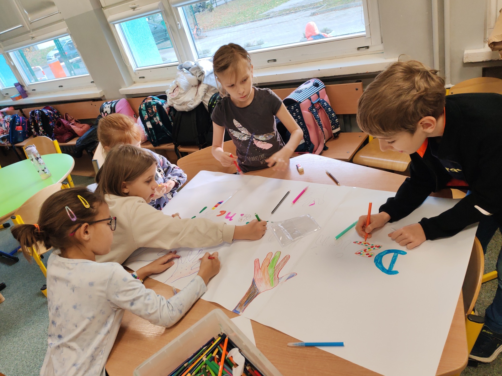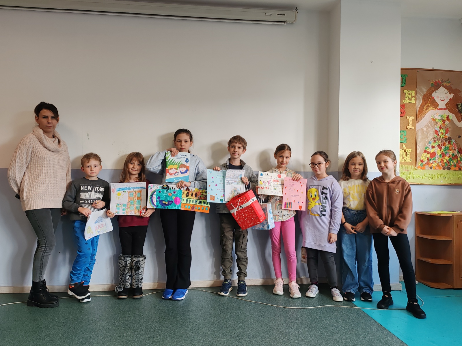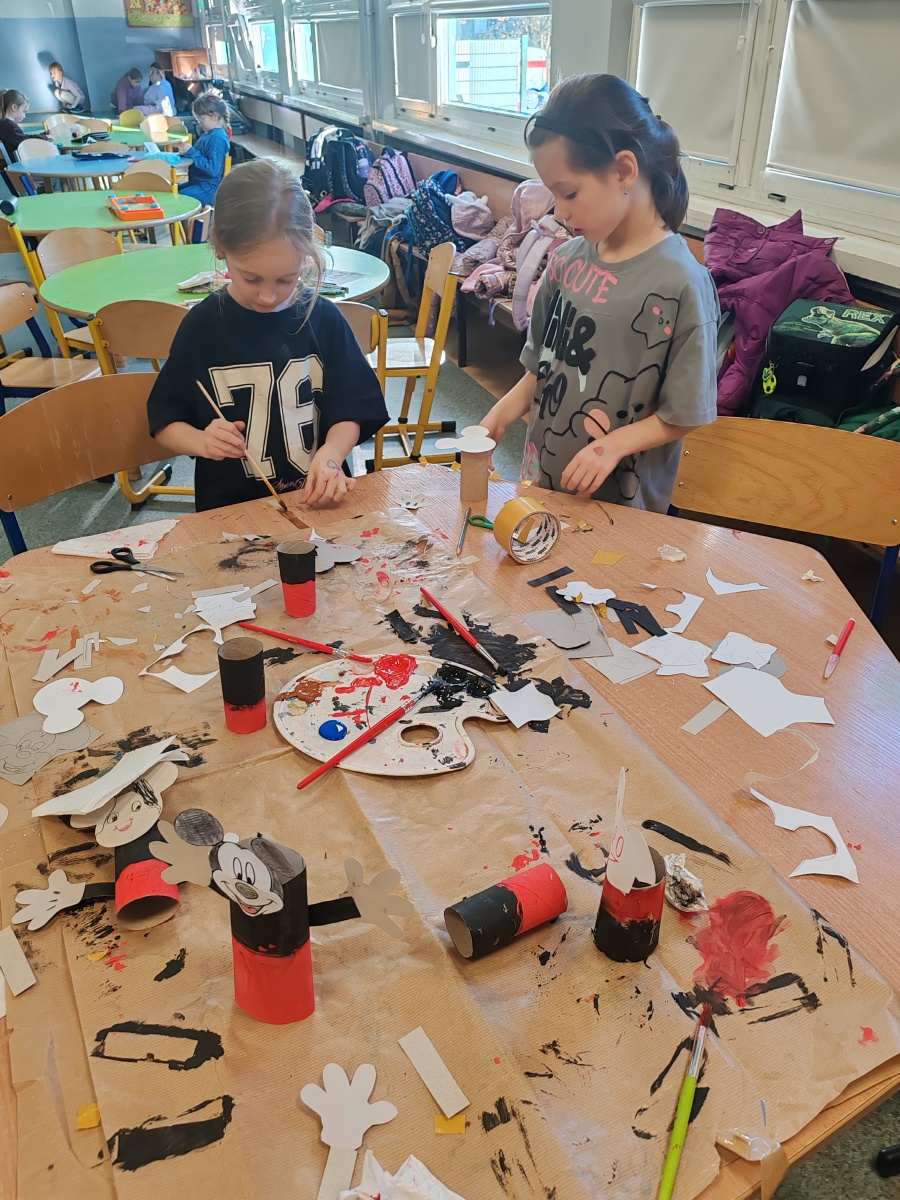 W listopadzie w świetlicy obchodziliśmy kilka świąt nietypowych, a jakże ważnych dla naszych uczniów i nas samych. Dzień postaci z bajek- dzieciaki chętnie tworzyły pracę że swoimi ulubieńcami, nie zabrakło księżniczek, postaci tworzonych przez Waluta Disneya jak i klasycznych jak Reksio czy Czerwony Kapturek. Świętowaliśmy również dzień tolerancji- dzieci dowiedziały się czym jest i co oznacza zachowywać się tolerancyjnie wobec innych, dzień zwieńczyła wspólny plakat. Dzień Myszki Miki i jej kompana. Dzień czarnego kota gdzie po rzy wykorzystanie farb i talerzyków papierowych powstały piękne kociaki ozdabiające nasza gazetkę. Dzień pluszowego misia gdzie tworzyliśmy z kolorowych papierów misie w zimowo- mikołajkowej odsłonie. Trwały również przygotowania i malowania przez dzieci ozdób do kiermaszu grudniowego. Został przeprowadzony i rozstrzygnięty konkurs zainicjowany przez uczennice klas trzecich “Moja wymarzona szkoła”. Gratulujemy zarówno pomysłodawczynią jak i zwycięzca ich pomysłowości i twórczości.