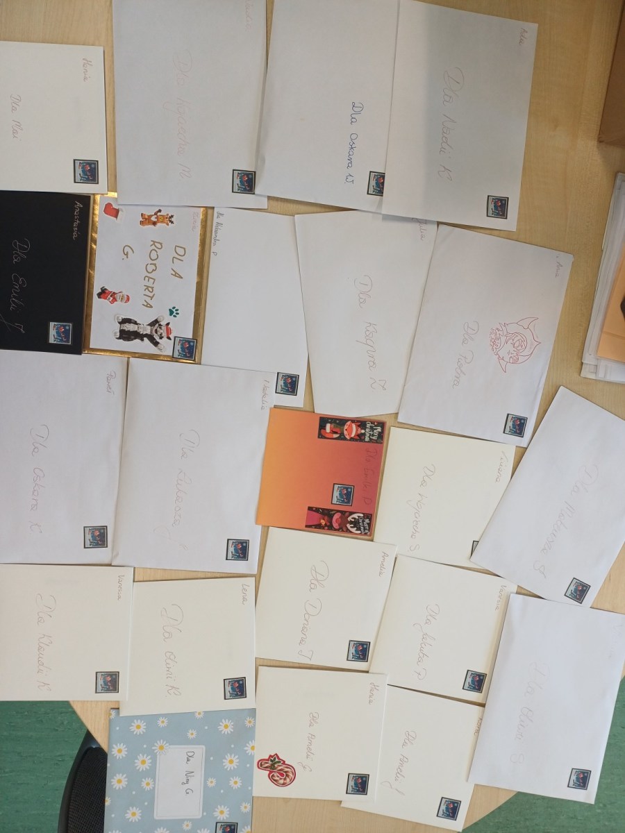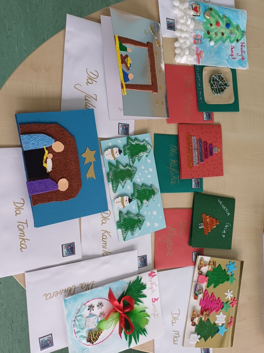 Misja kartkowa została zakończona. Nasi uczniowie w pocie czoła od kilku tygodni wykonywali z sercem ręcznie robione kartki świąteczne do których wpisali z serca płynące życzenia.