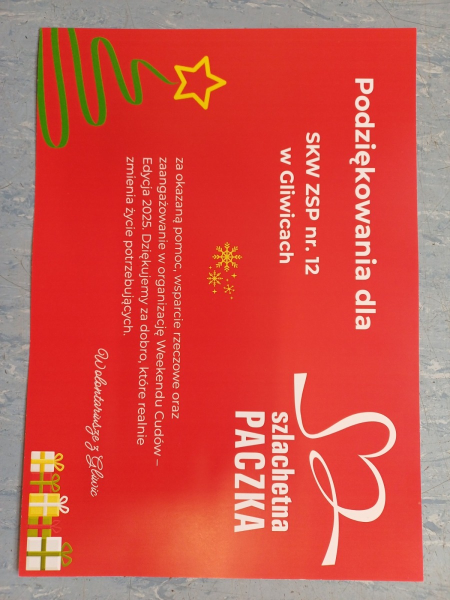 2. Darczyńców Szlachetnej Paczki, które zostały wręczone podczas gali Weekend Cudów. Przekazaliśmy również ręcznie robione ozdoby świąteczne, które uświetniły to wydarzenie.