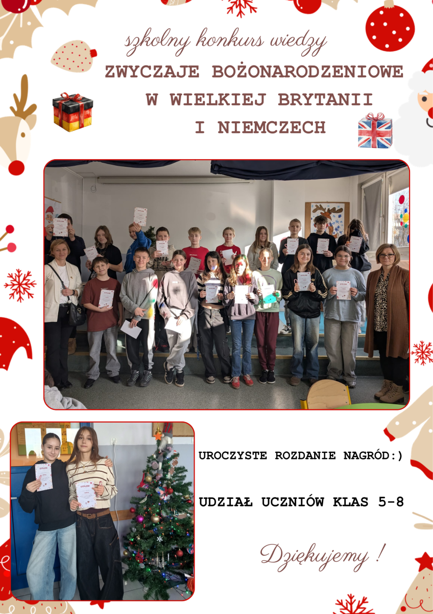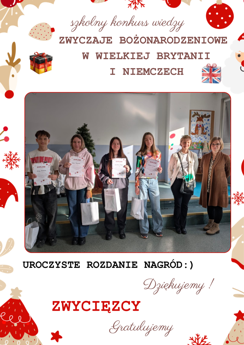 Uroczyste rozdanie nagród za udział w świątecznym konkursie językowym o ZWYCZAJACH