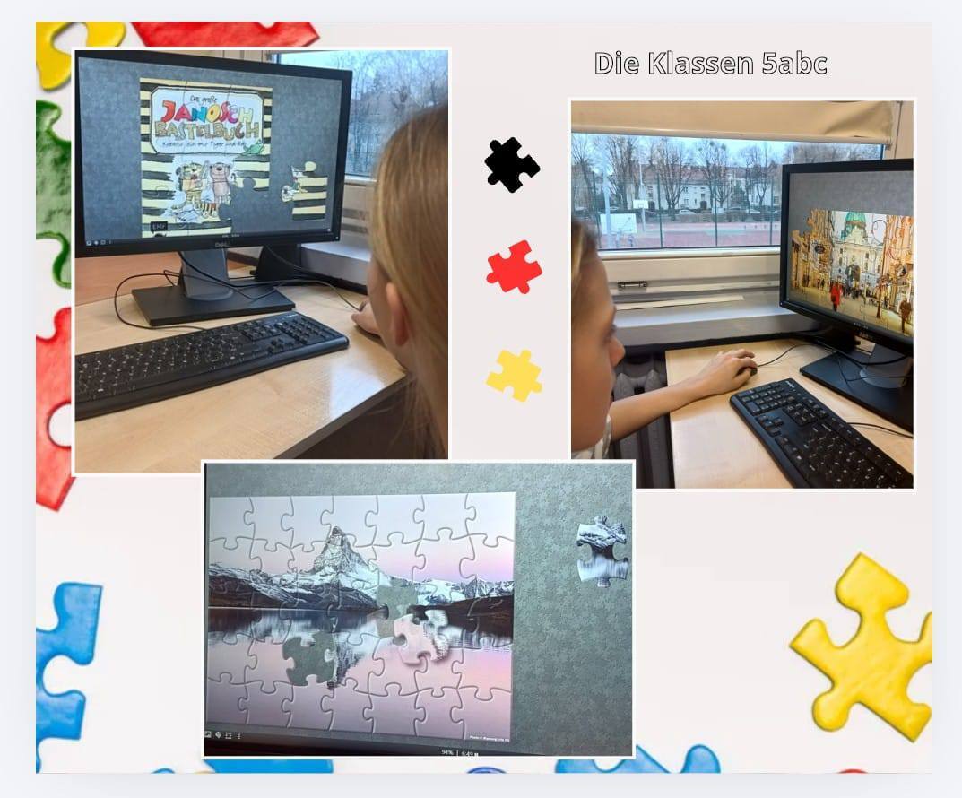 Odgadywaliśmy jakie puzzle na komputerze pokazują krajobraz Austrii lub Szwajcarii.