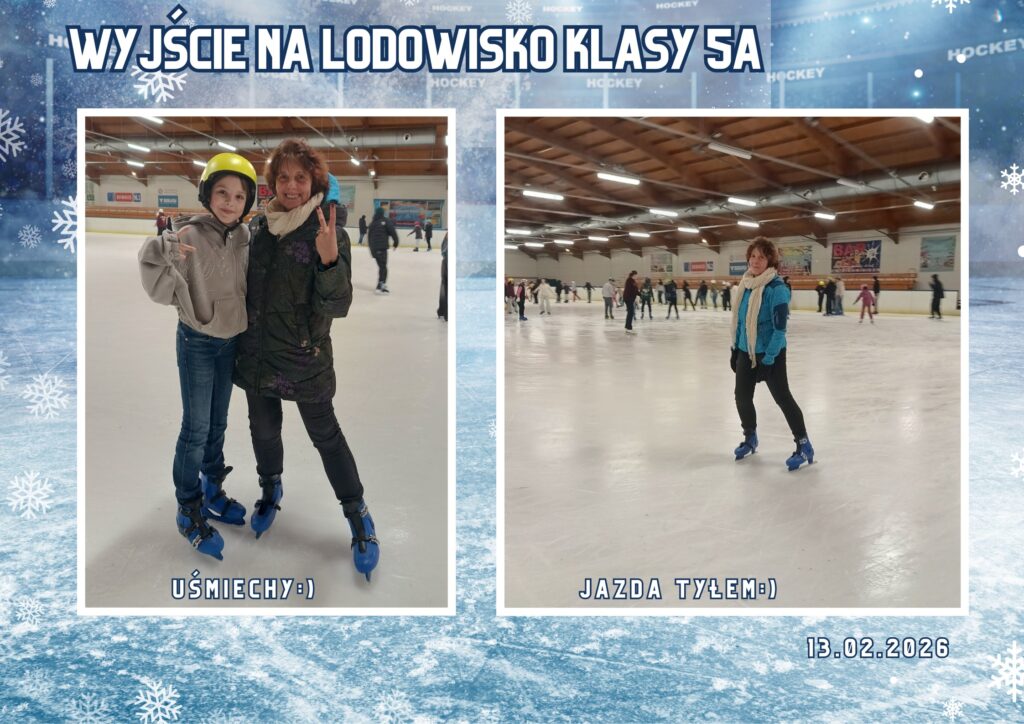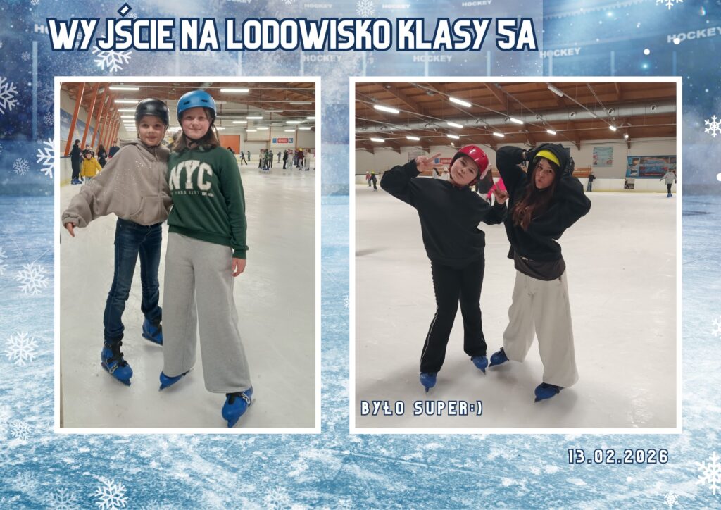 5a na łyżwach 18 lutego 2026 Klasa 5a już 13.02. w piątek rozpoczęła ferie zimowe:) Zadbała o swoje bezpieczeństwo, włożyła kaski i wykonywała najlepsze akrobacje na lodzie 🙂 Razem z Panią Androną i Panią Magdą uczniowie wybrali się również na lody do Grycana. Było super:) Androna Cortez Magdalena Prątnicka Previous Dyskoteka dla uczniów Next Wojewódzki Konkurs językowo – plastyczny “Pocztówka ze Szwajcarii”