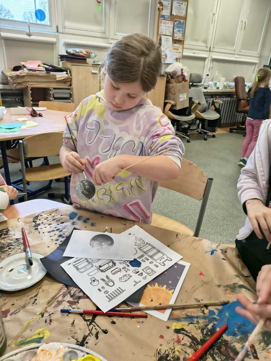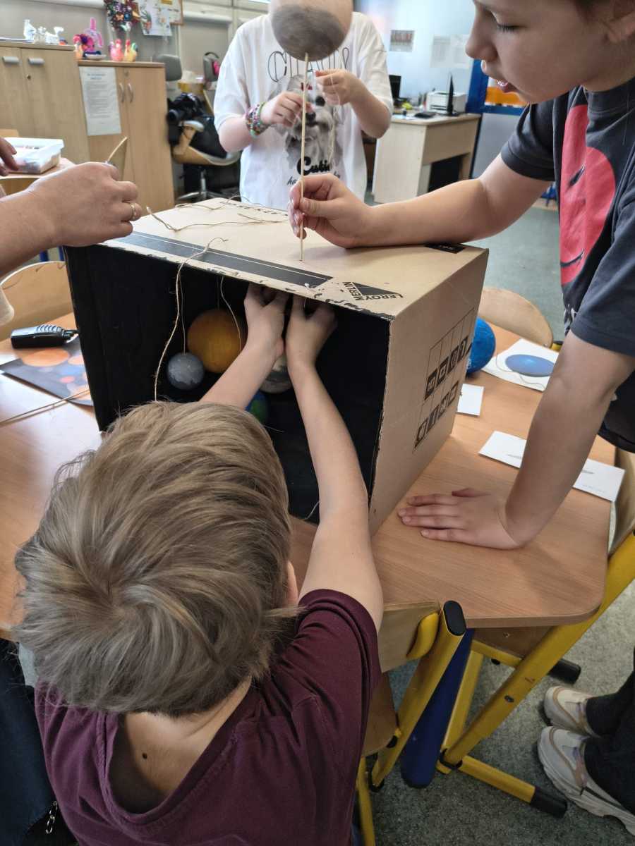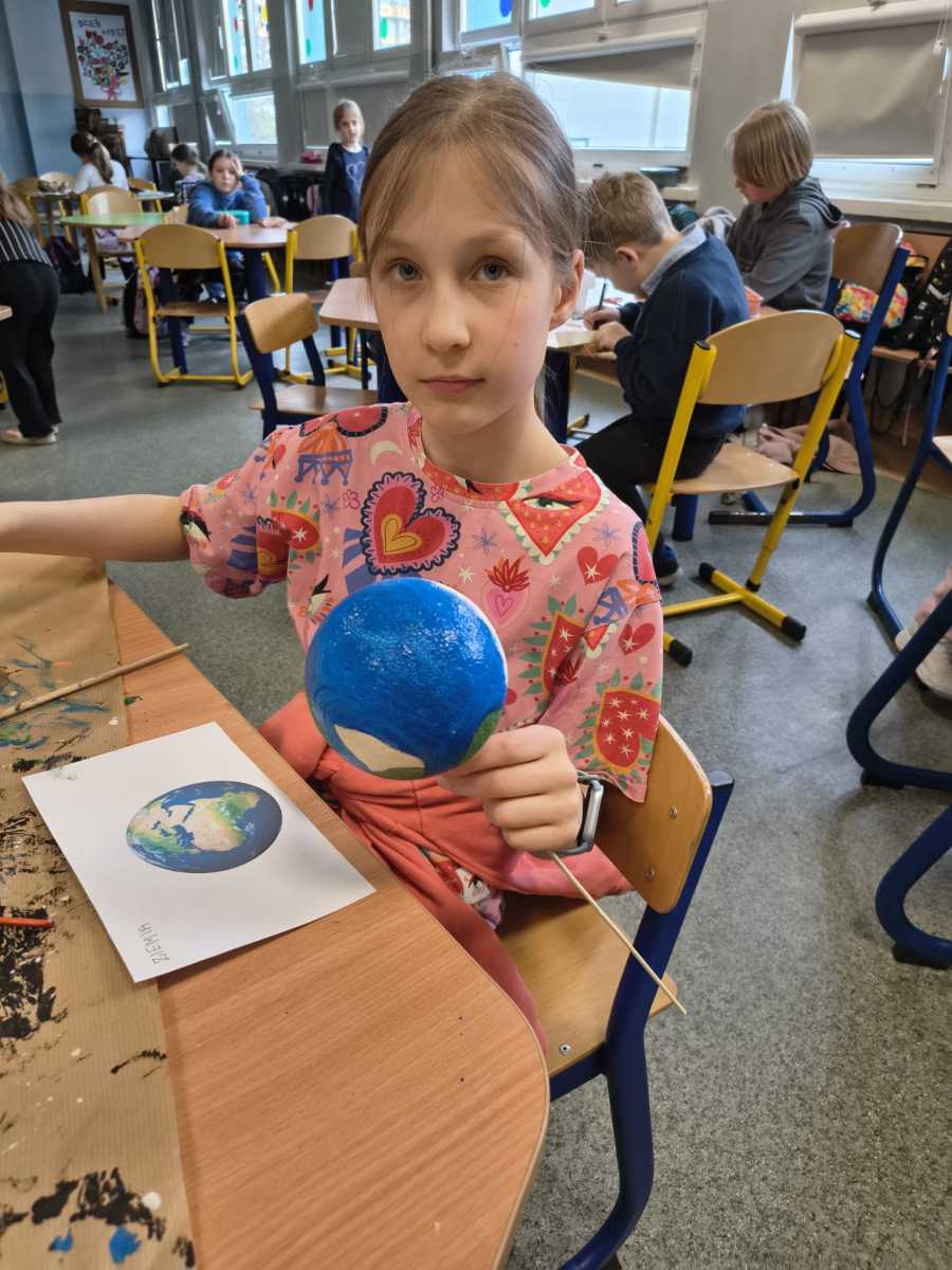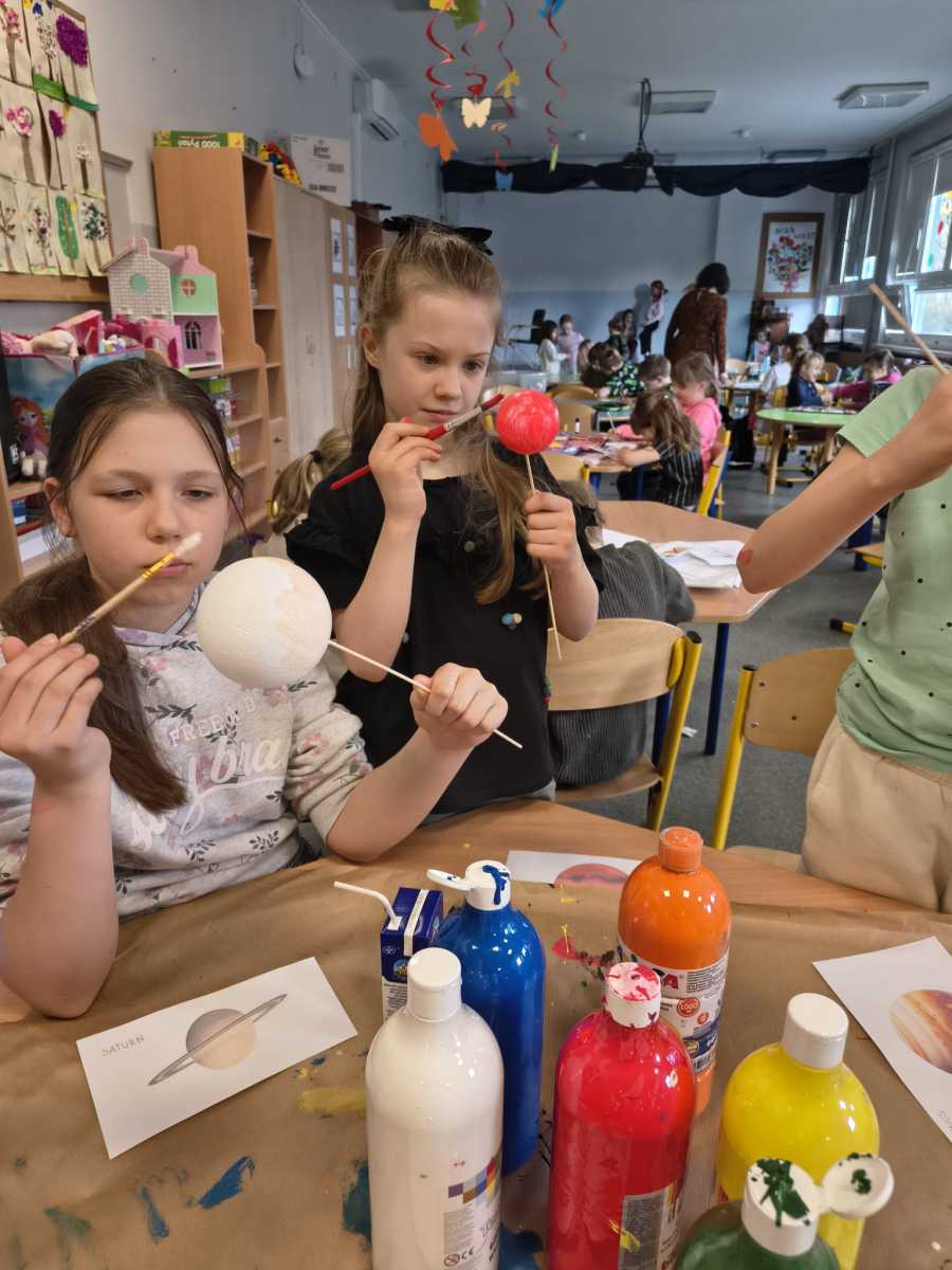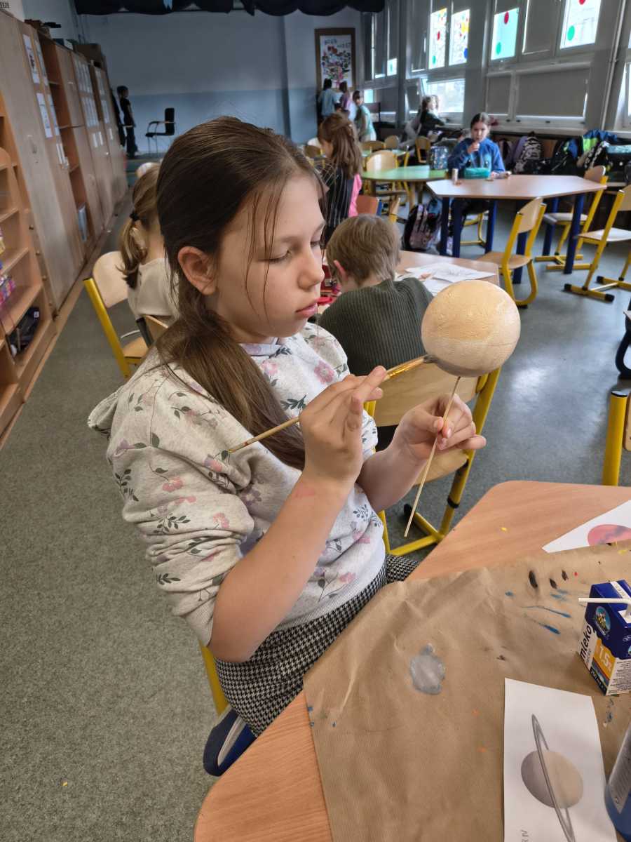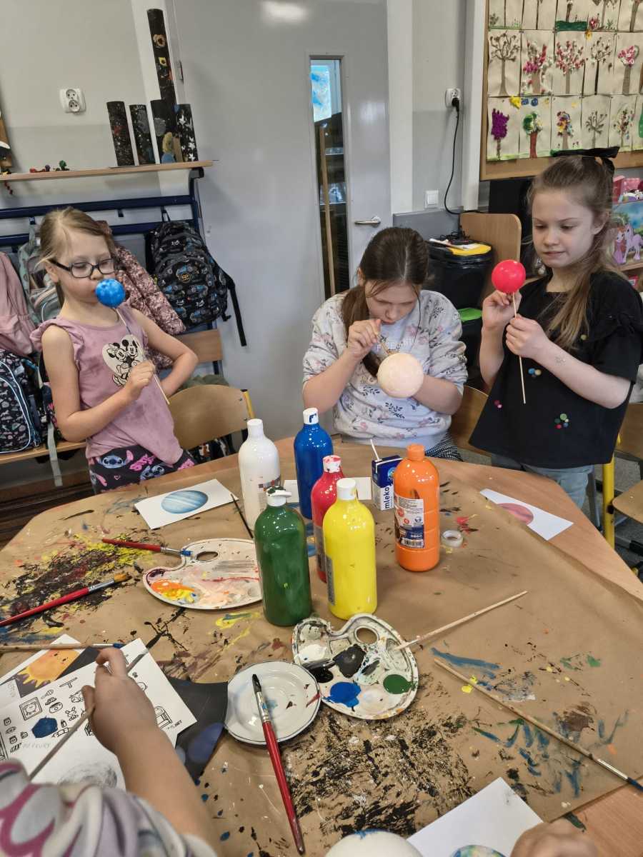 Kolejny moduł zrealizowany w marcu na świetlicy szkolnej dotyczył zgłębiania tajników kosmosu,budowy układu słonecznego i kosmosu.Uczniowie dowiedzieli się ile jest planet i jak się nazywają, co je wyróżnia. Na zakończenie zajęć dzieci przygotowały piękna makietę budowy układu słonecznego z wykorzystaniem kul styropianowych oraz sznurka i kolorowych farb.