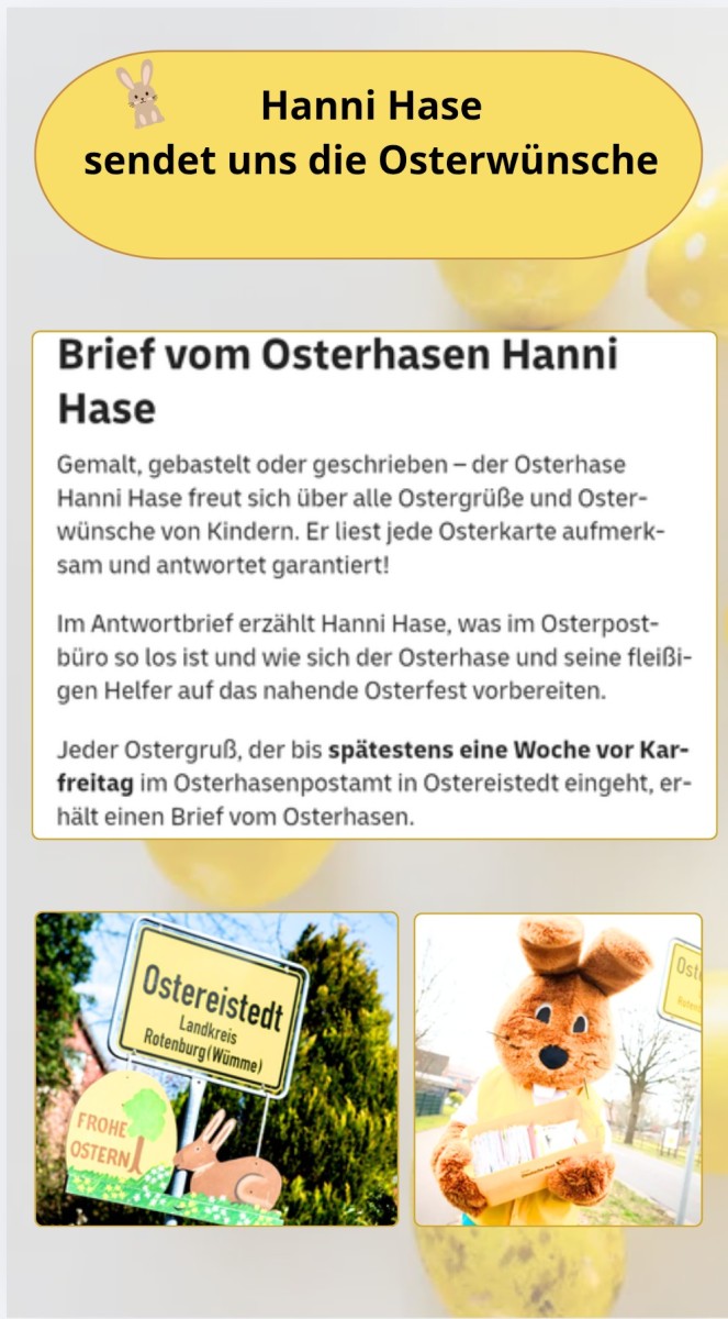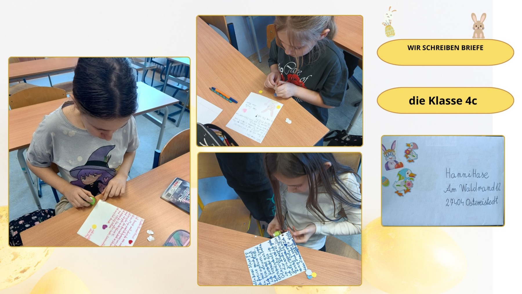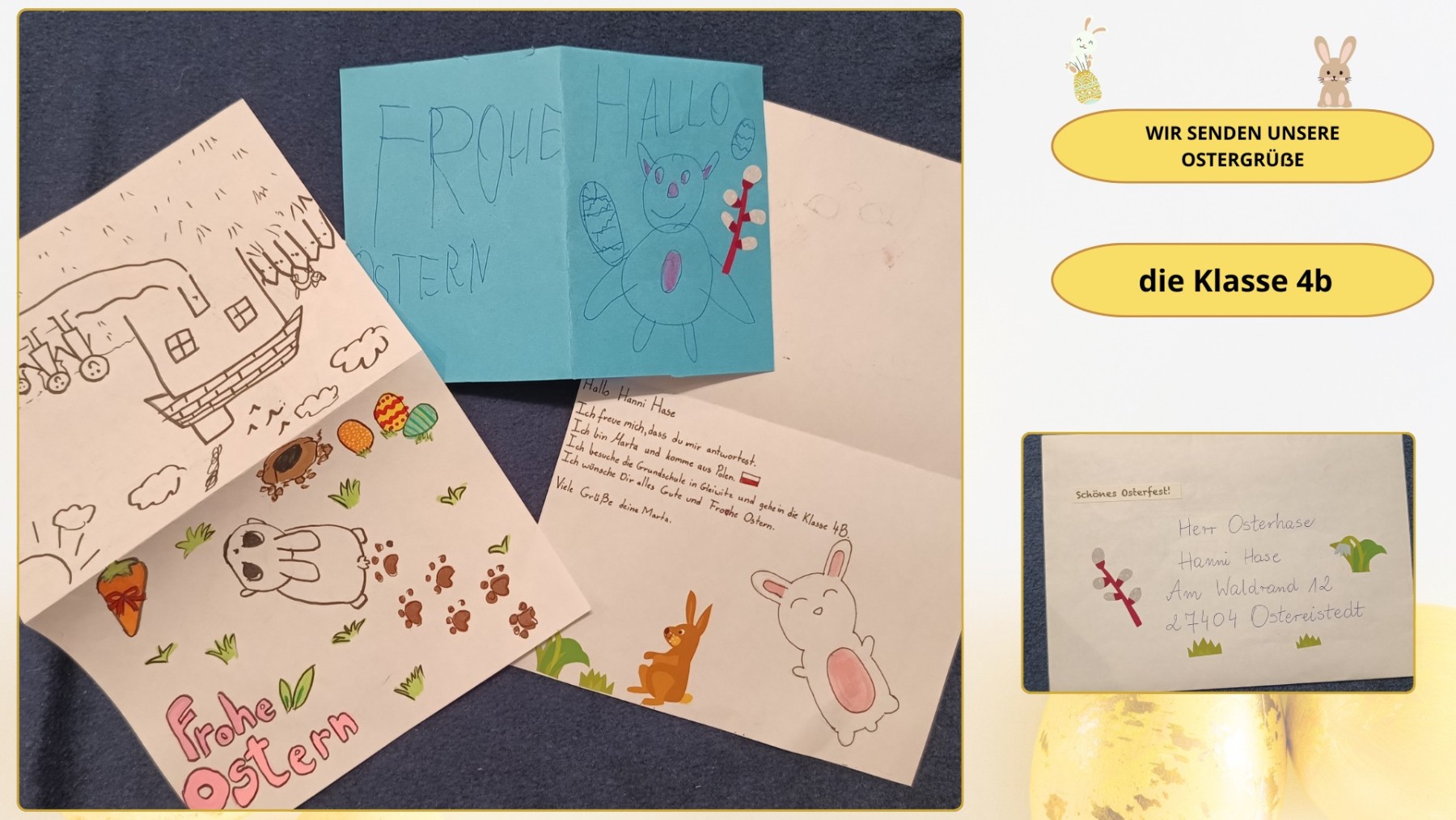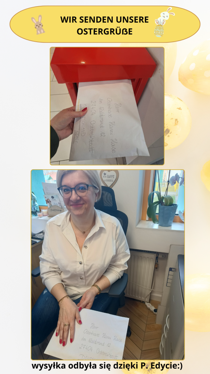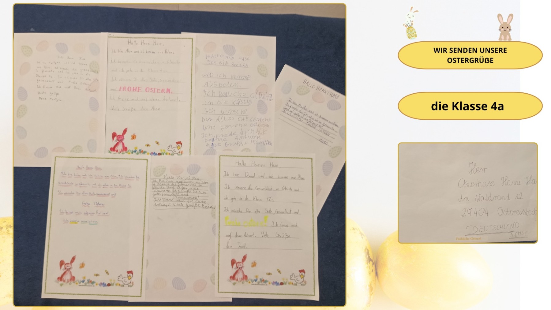 “WIELKANOC” na lekcjach z j.mniejszości niemieckiej w klasach 4 to nie tylko gry i zabawy językowe, ale przede wszystkim POCZTA do Hanni Hase. Uczniowie napisali odręcznie listy wysłane do zajączka z Niemiec. Bezpośrednio przed Świętami otrzymaliśmy odpowiedź:)
